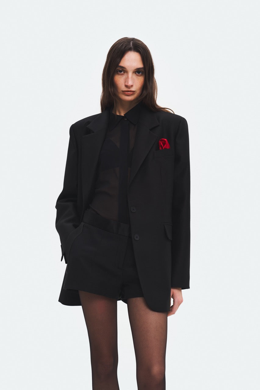 Tailored single-breasted blazer. Slightly oversized, musculine fit, straight through the waist.