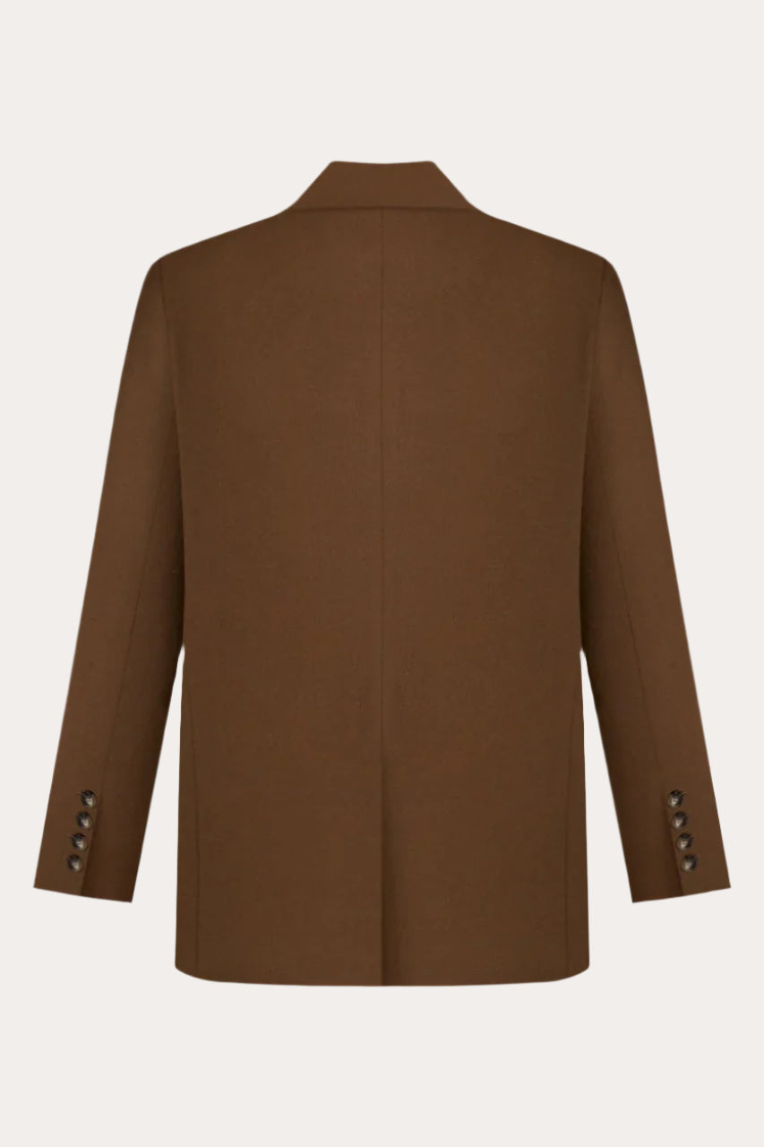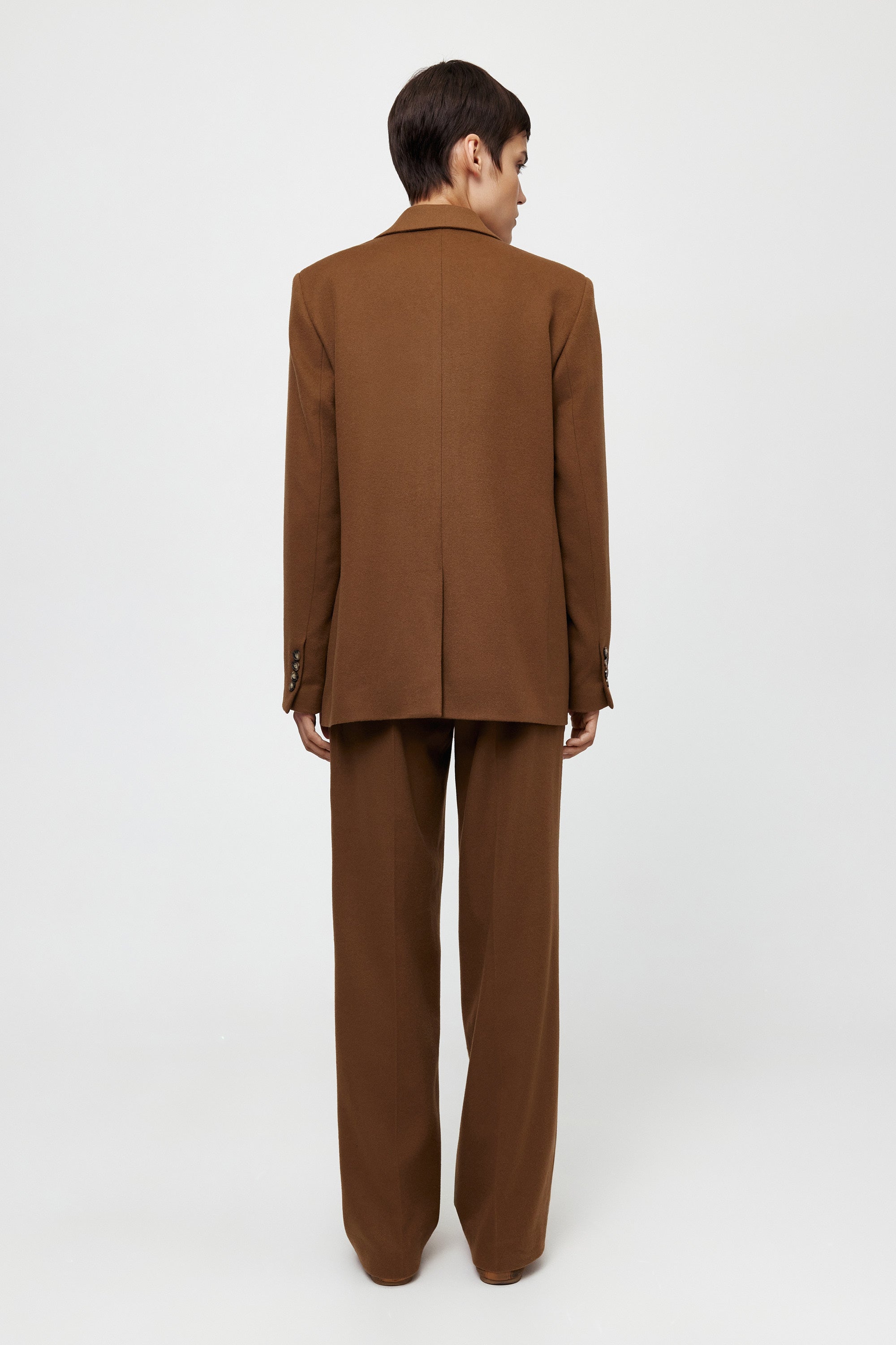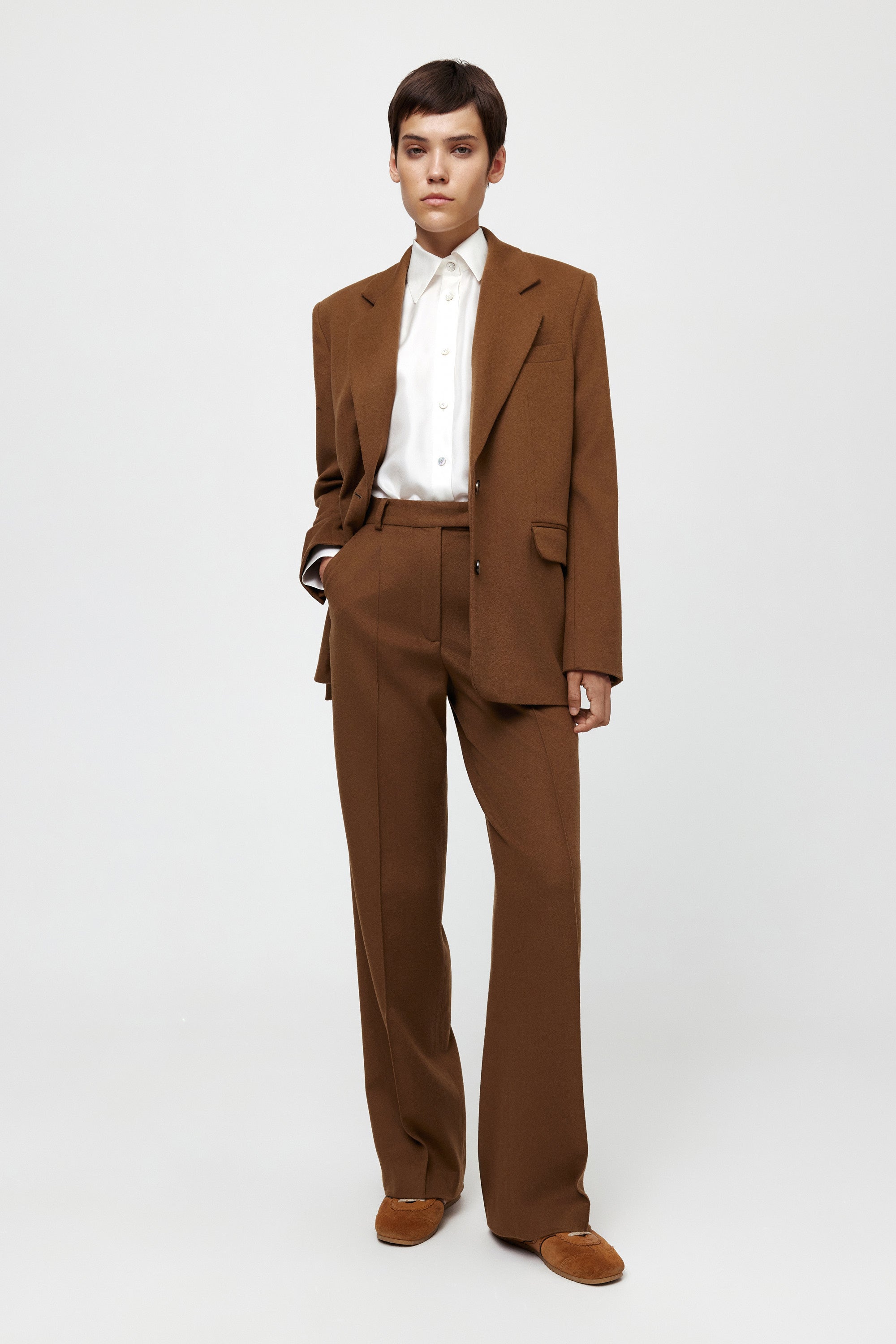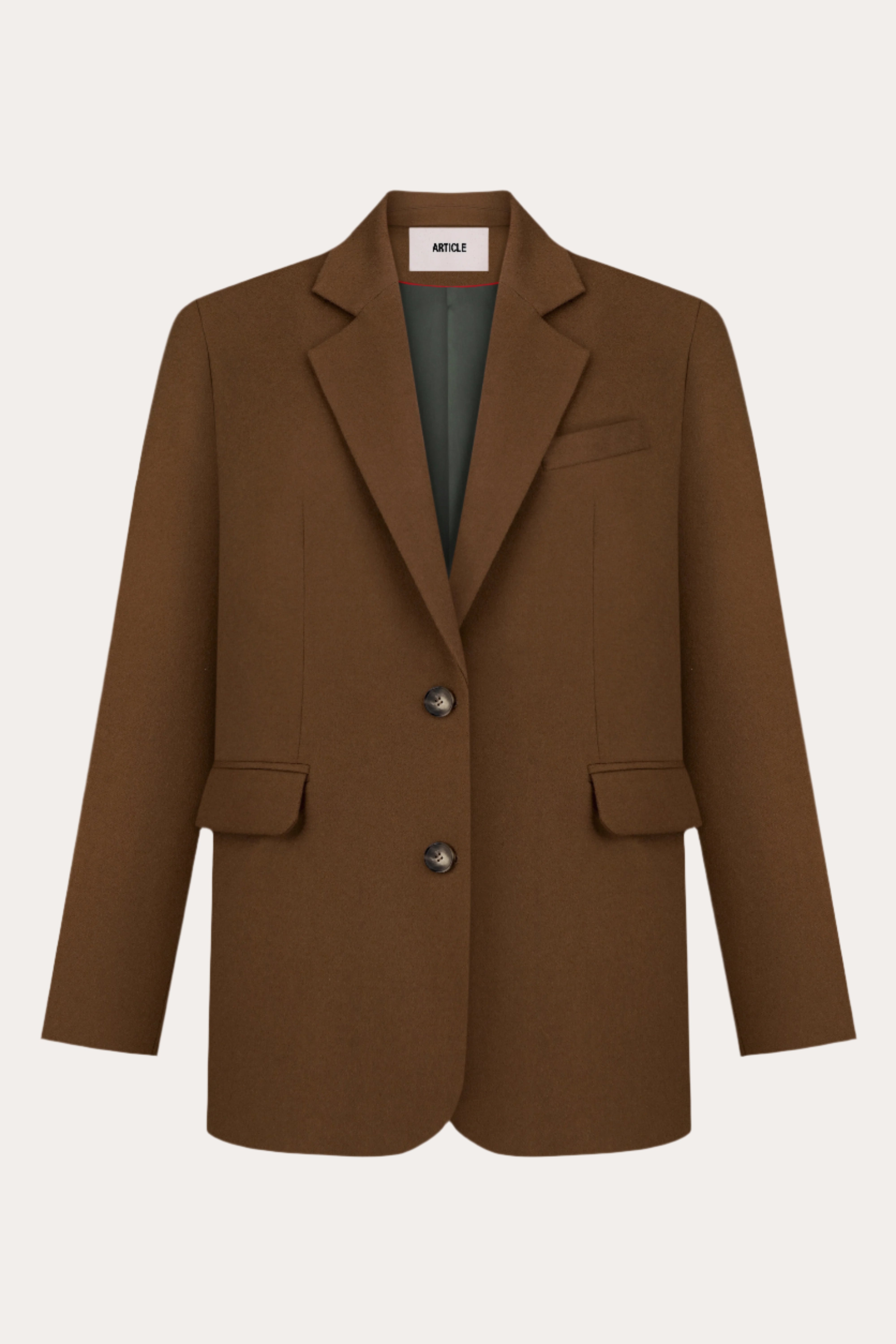 Tailored single-breasted blazer. Slightly ovesized, masculine fit, straight cut through the waist.