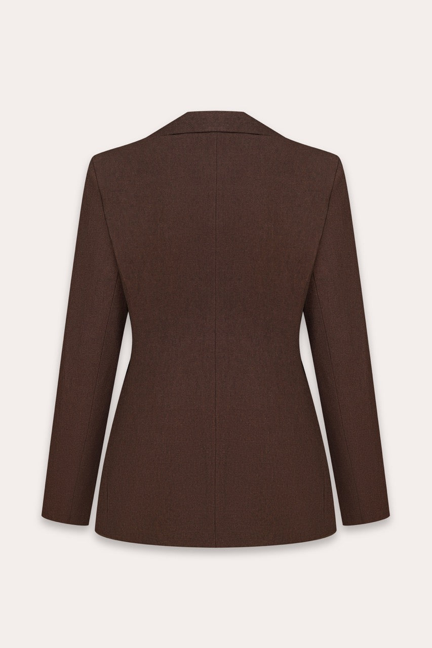 Single-breasted suit blazer echoing the season's focus on curated tailoring. It has a slim silhouette cinched at the waist and is finished with flap pockets. Crafted from a grained tailoring fabric.