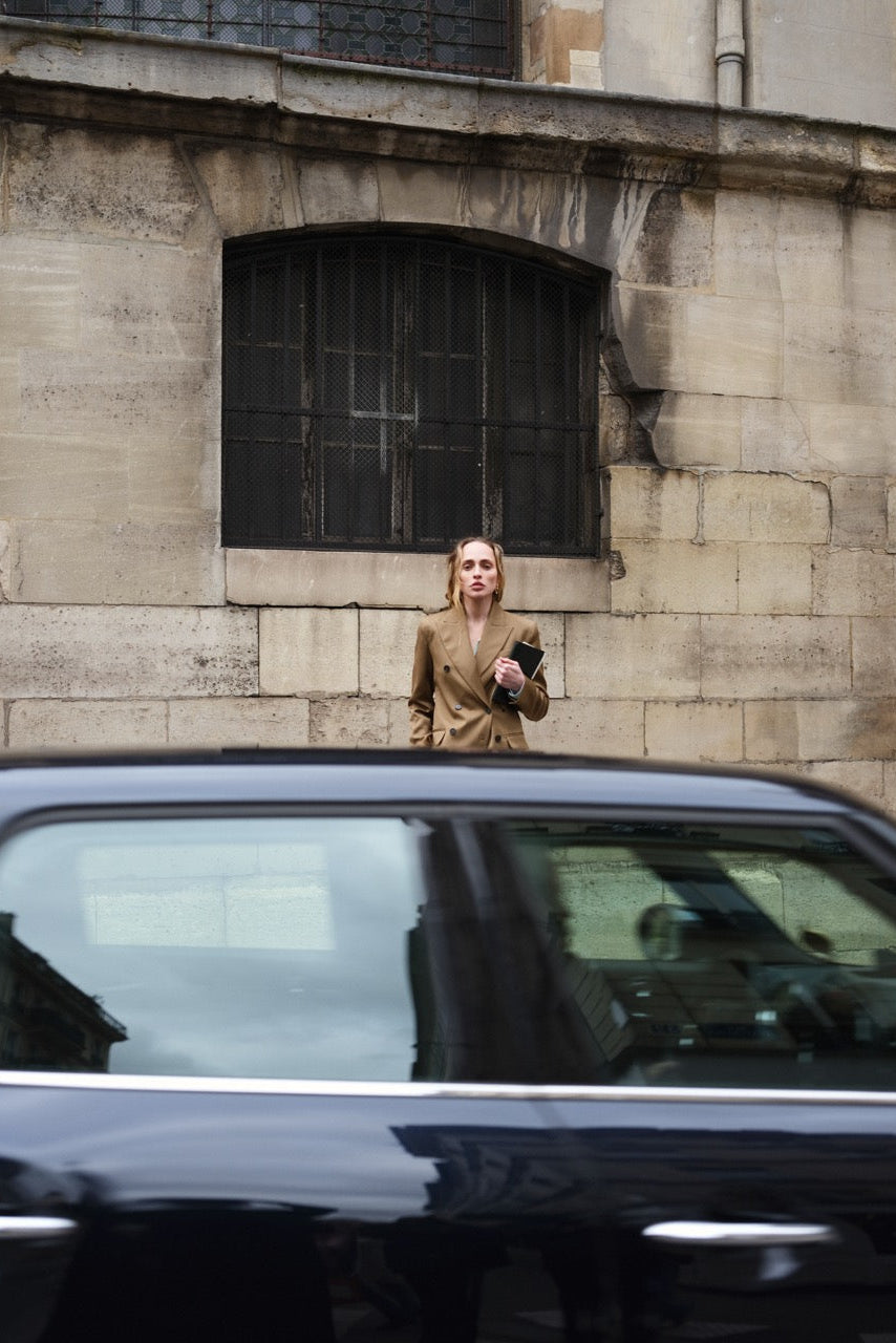 Classic double-breasted blazer that blends sharp tailoring codes and directional proportions. Crafted from soft wool, it features a fitted silhouette from the waist down, with strong shoulder definition.