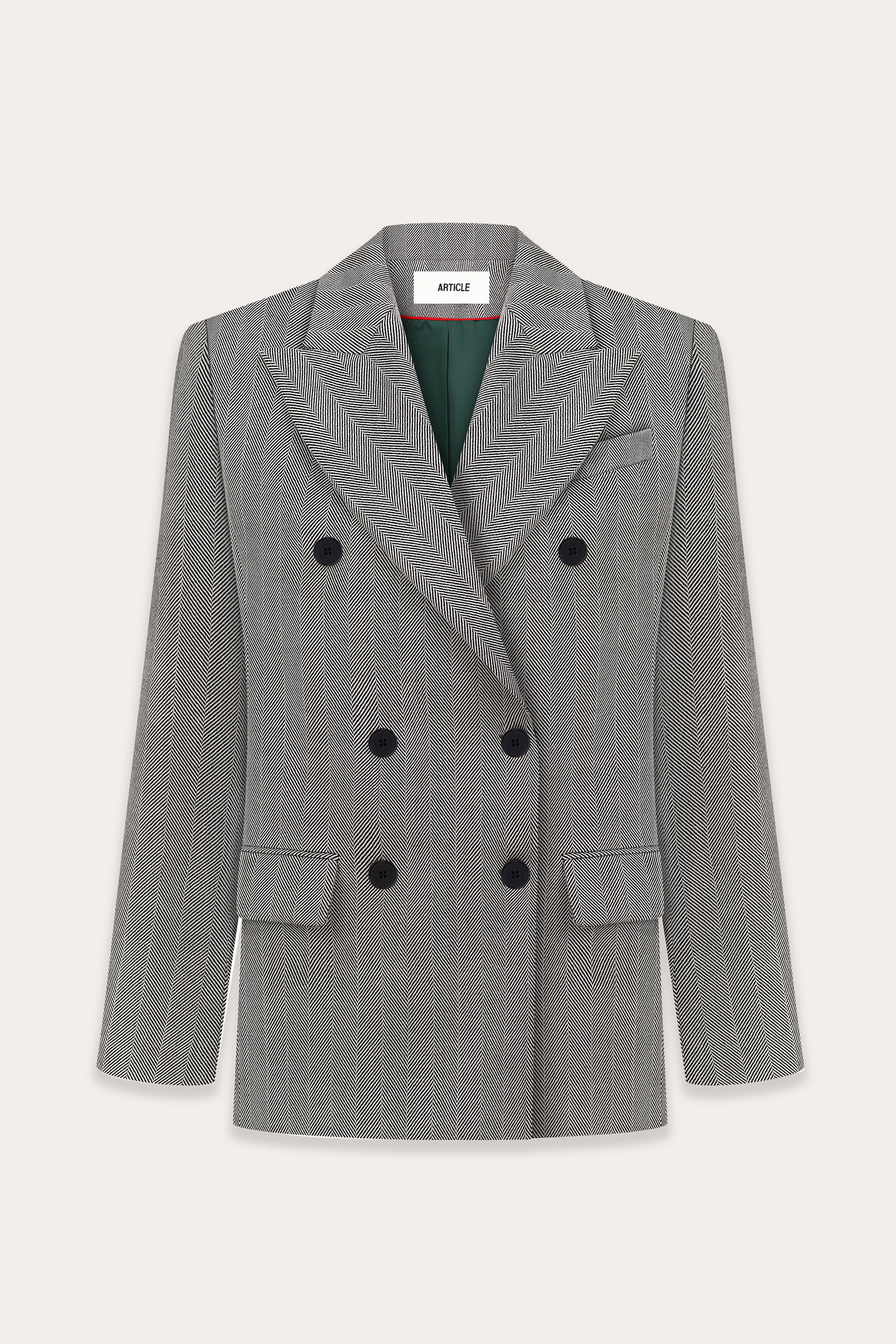 Classic double-breasted suit blazer that blends sharp tailoring codes and directional proportions. Crafted from pinstripes wool, it features a fitted silhouette from the waist down, with strong shoulder definition.