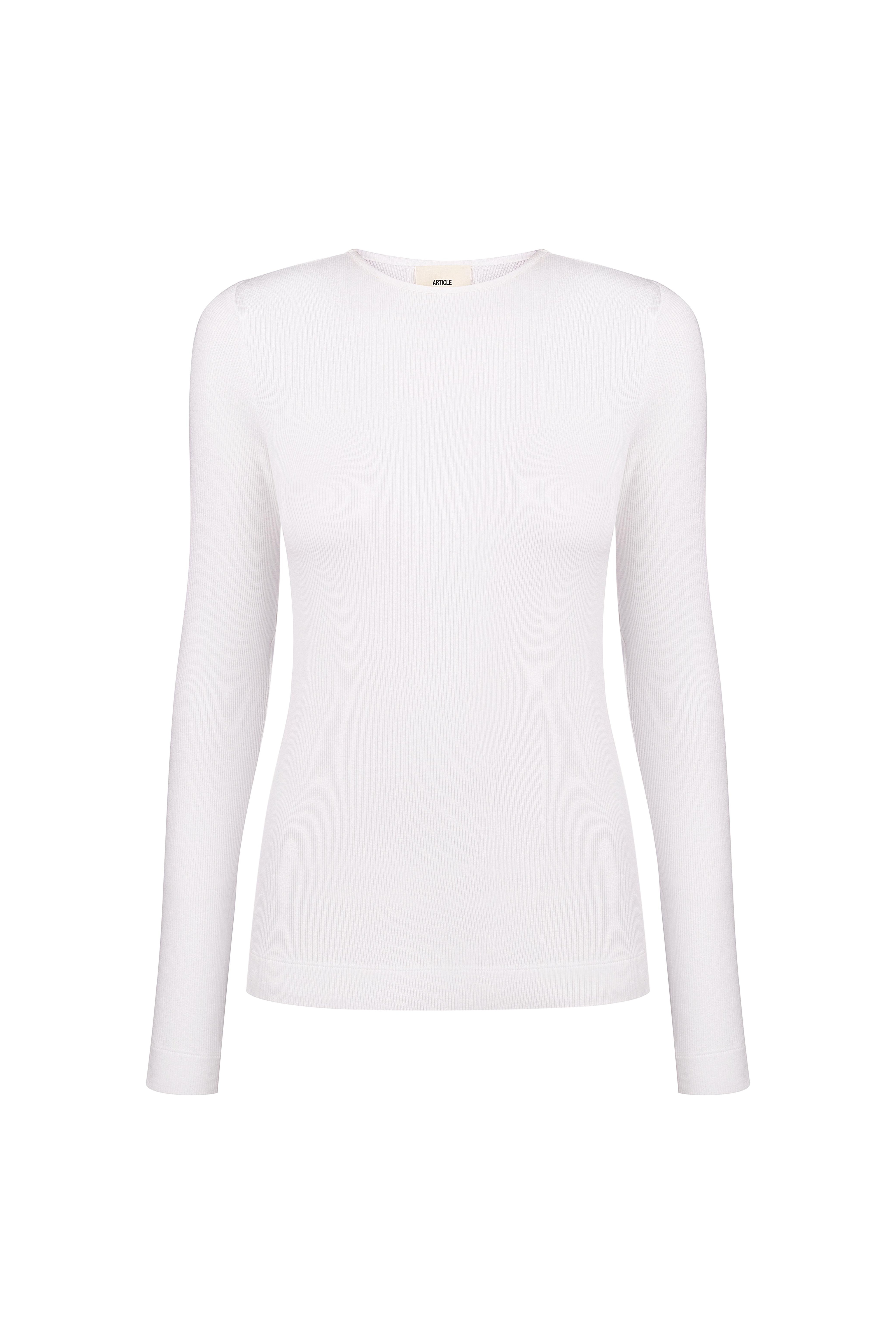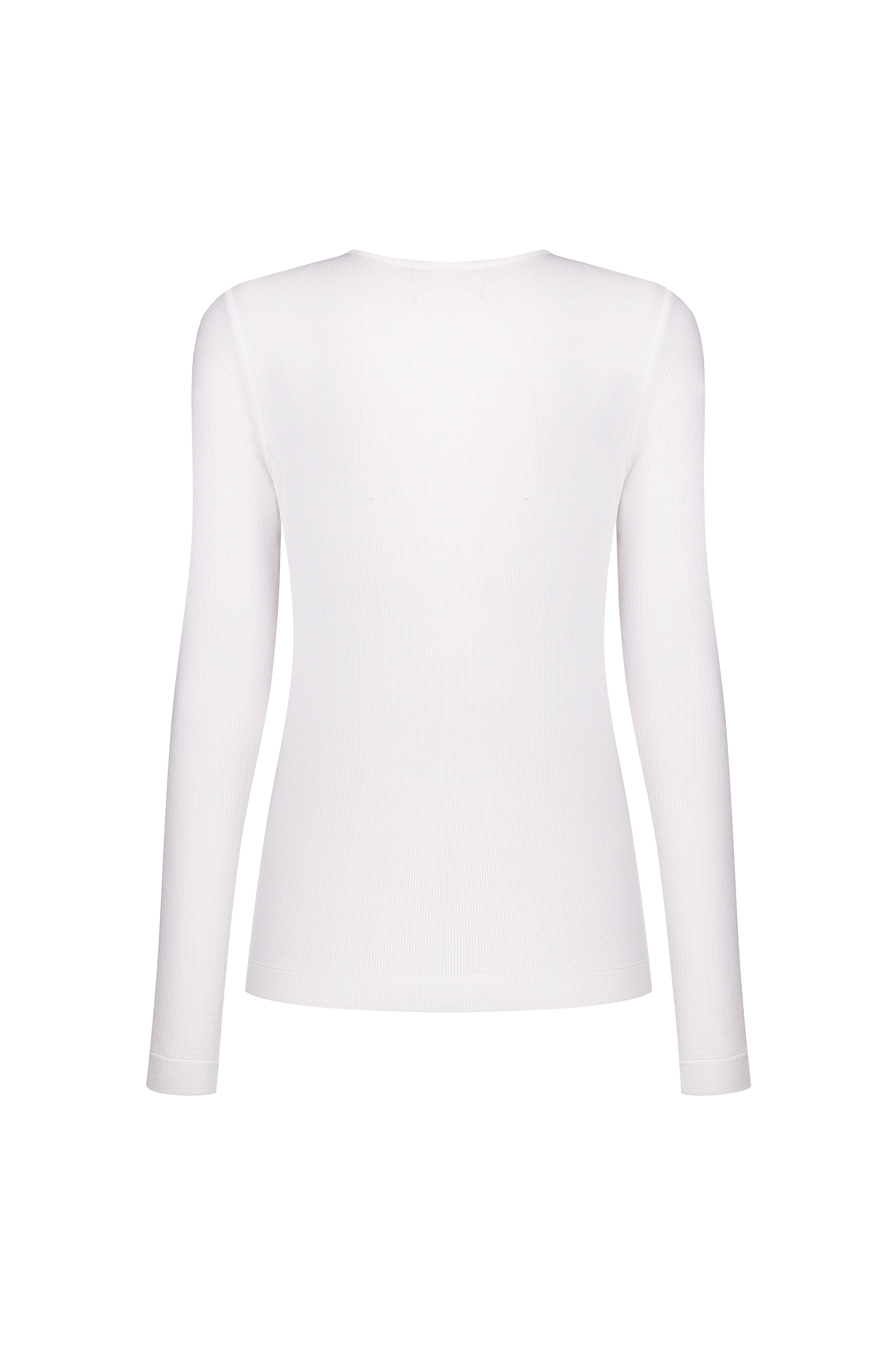 Milky white longsleeve fitted silhouette with a round neckline made of textured Italian cotton. The perfect basic addition to your wardrobe.