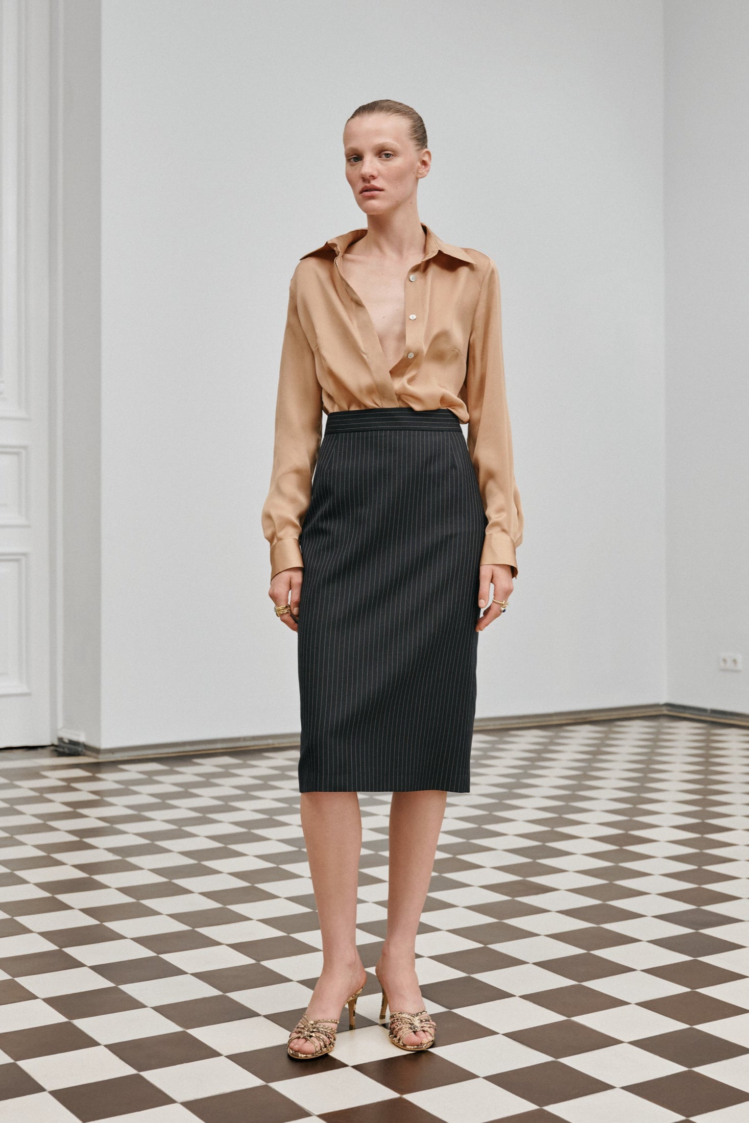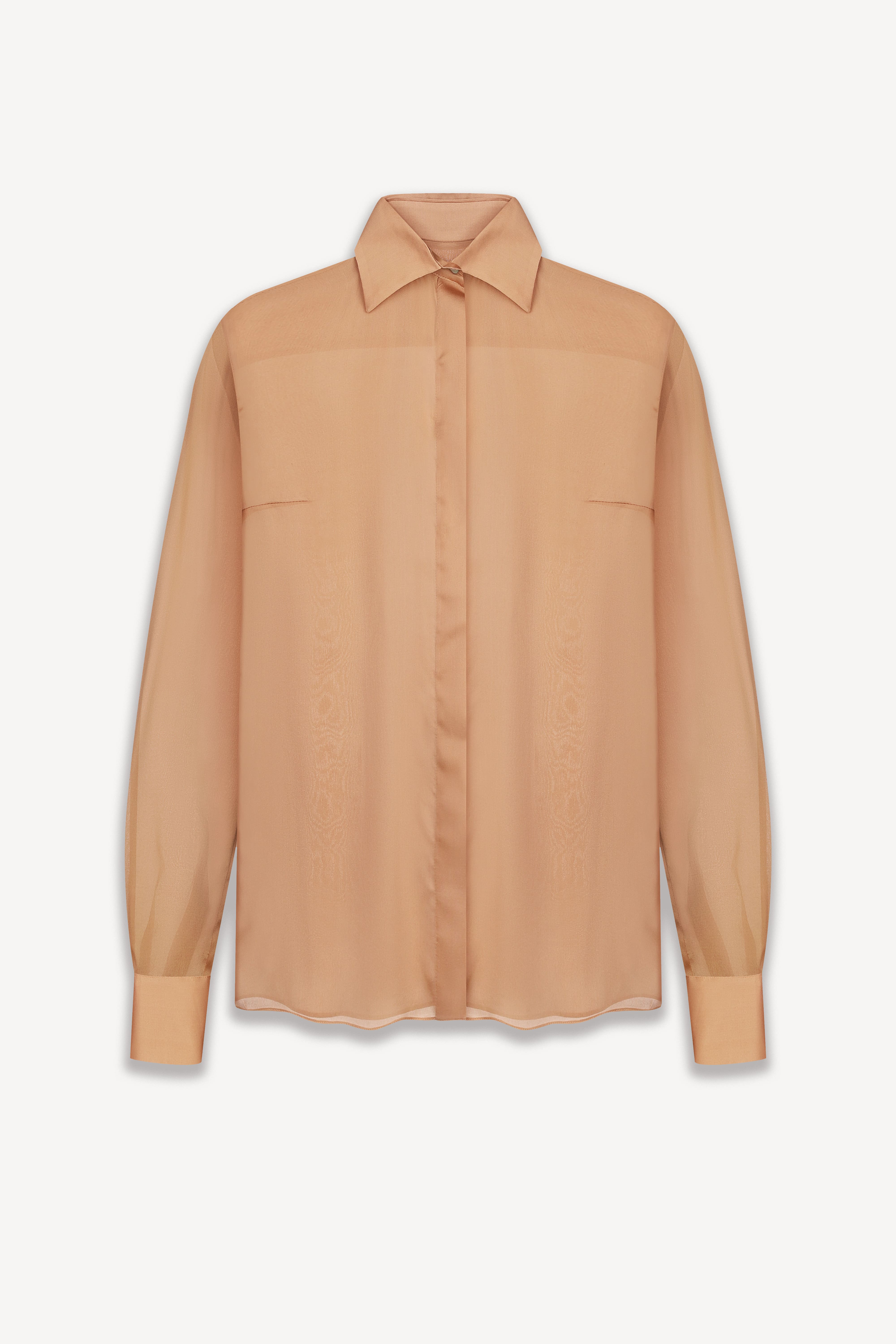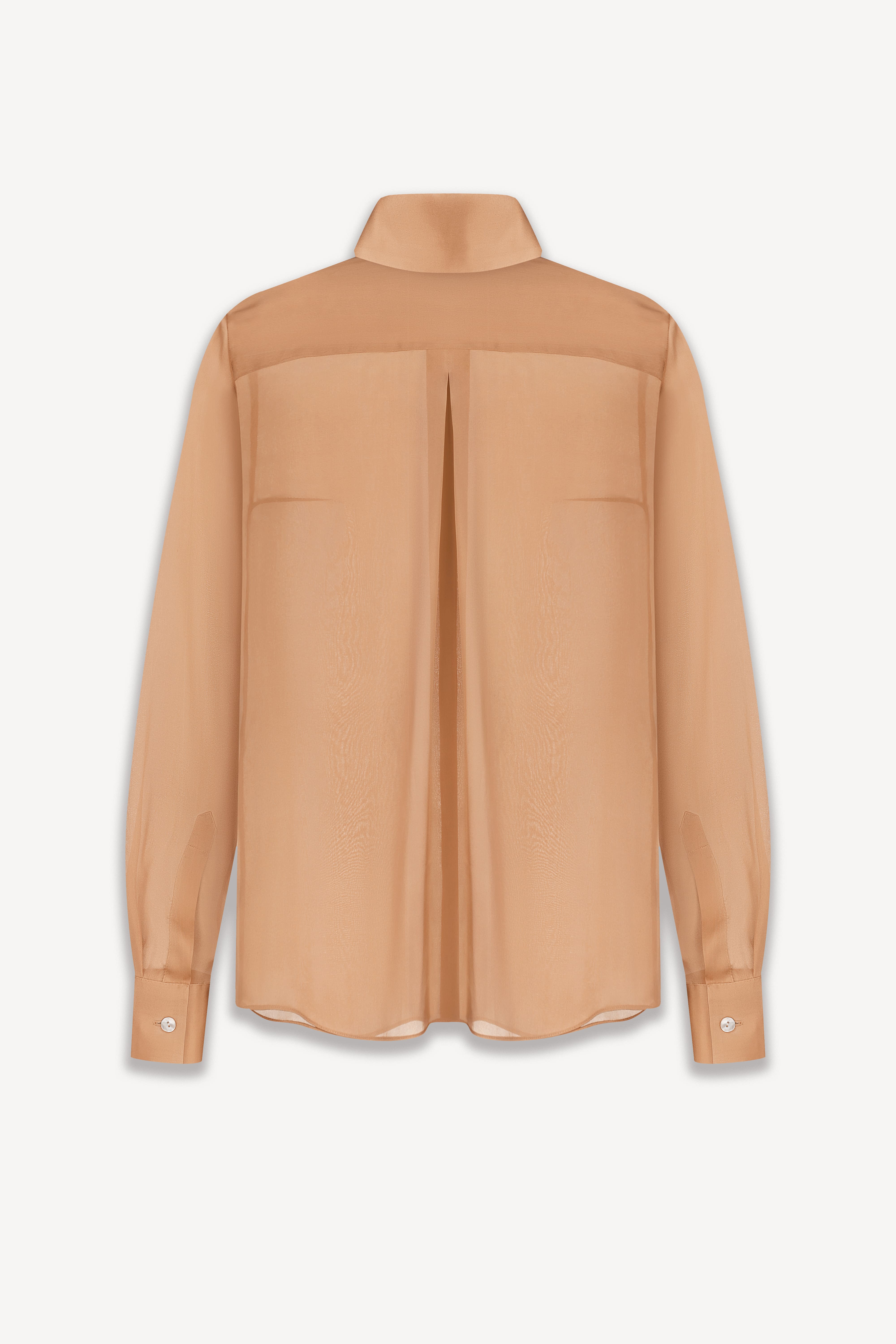 Класична сорочка Fitted виготовлена з натурального італійського шовку. Має завужений силует вздовж лінії талії з класичним коміром та приховану застібку на ґудзиках під планкою.