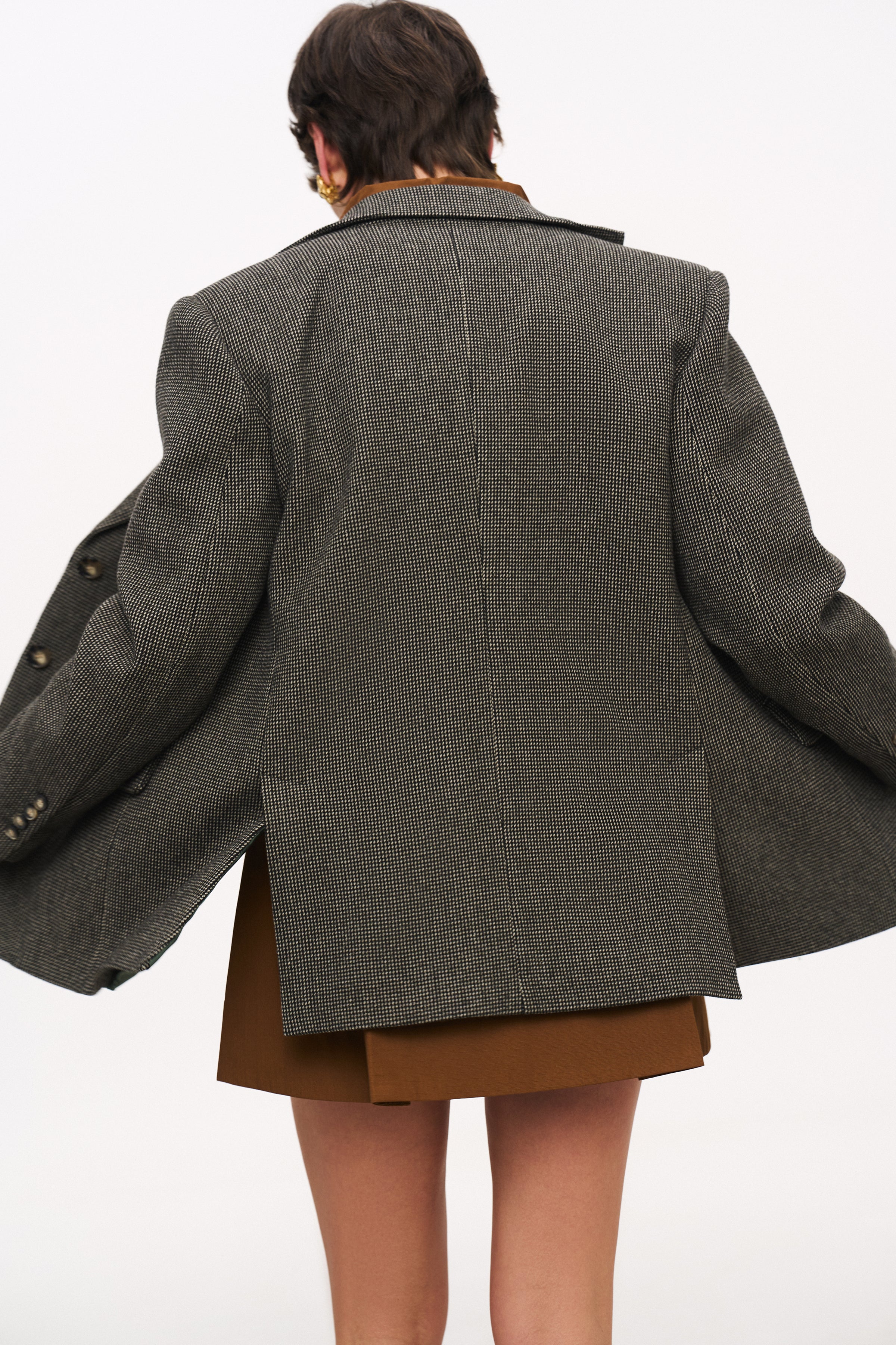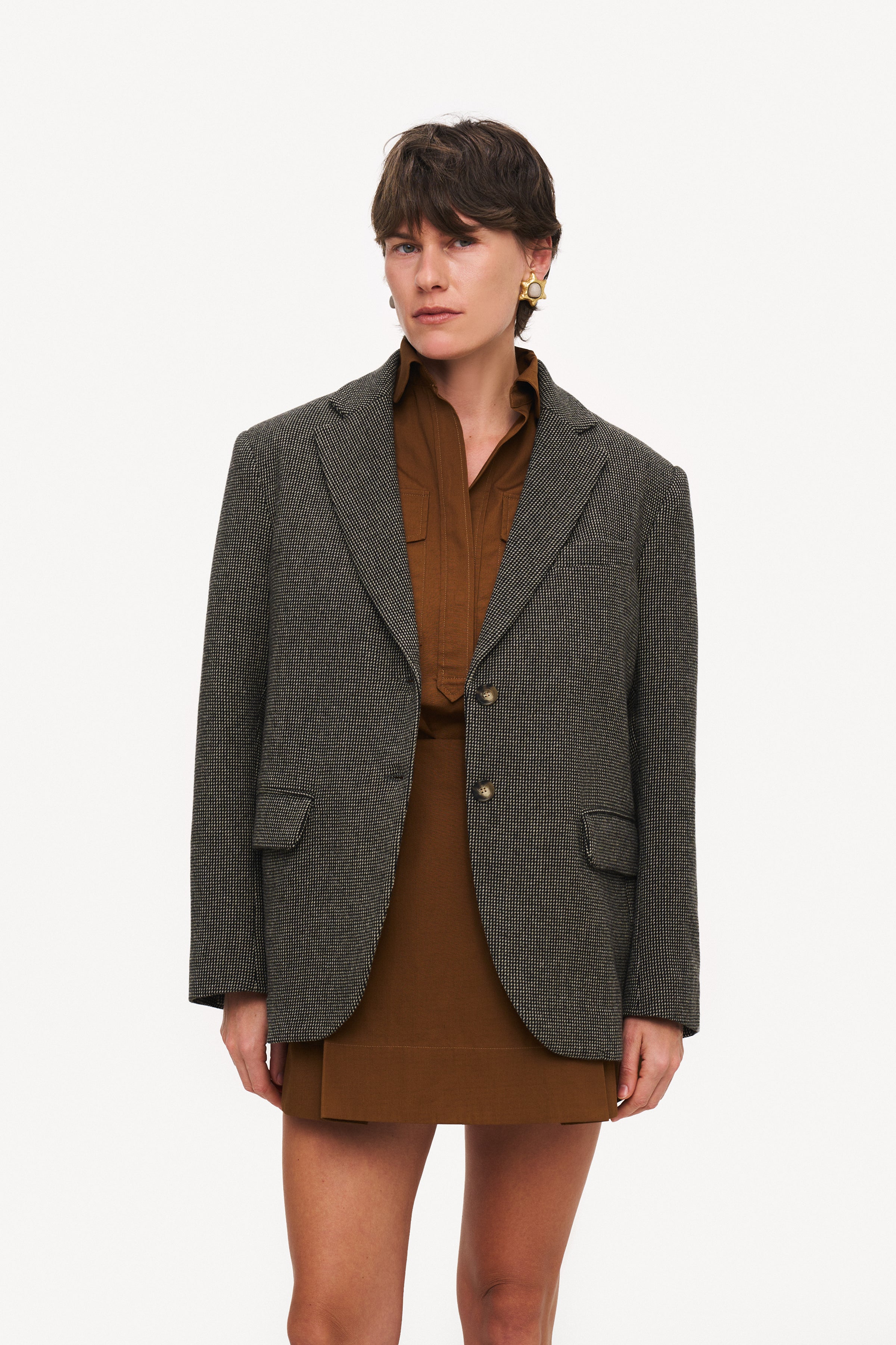 Однобортний блейзер City у стилі оверсайз виконаний з натуральної м’якої вовни. Модель має прямий крій із спущеною лінією плеча. Передня частина доповнена кишенями з клапанами, а спинка й рукави — прорізними шліцами.