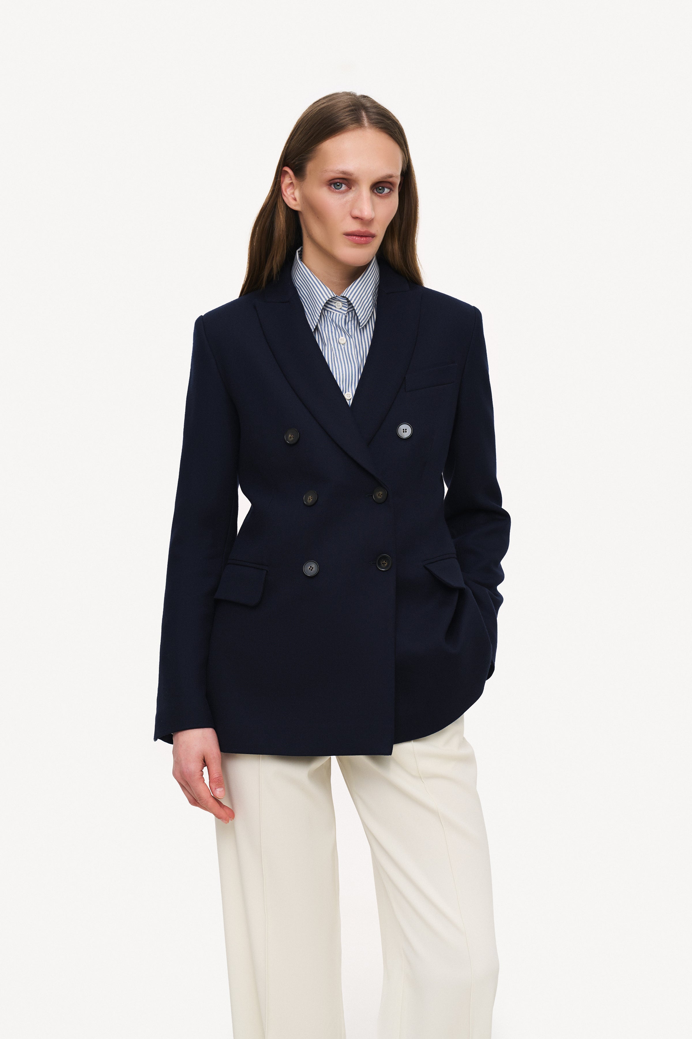 Двобортний класичний блейзер Paris виконаний із натуральної м’якої вовни. Модель має приталений силует із чіткою лінією плечей та класичними лацканами. Передня частина доповнена прорізними кишенями з клапанами, а на спинці розташована відкрита шліца.