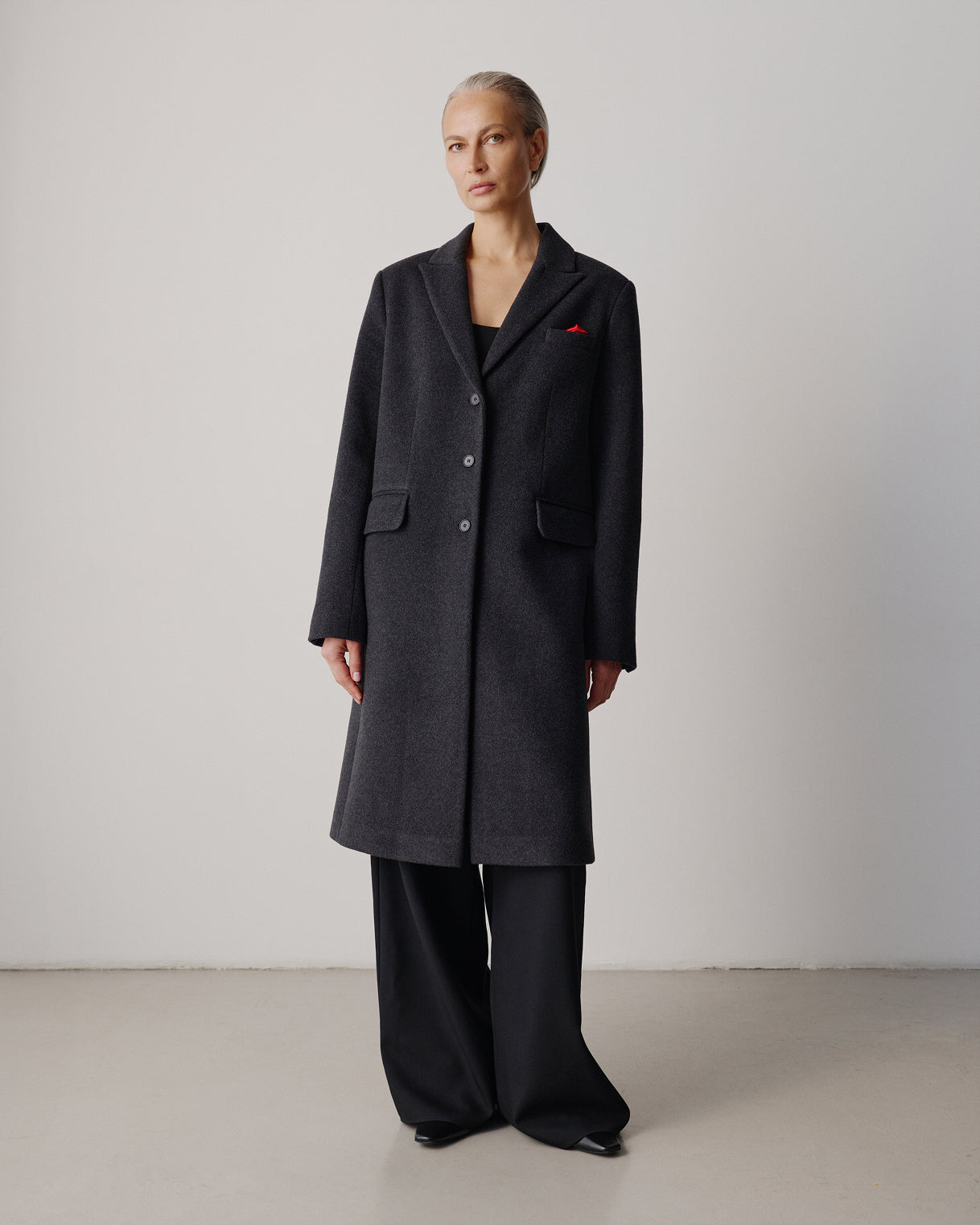 червоною хустинкою, кишенями клапанами та шліцею позаду.