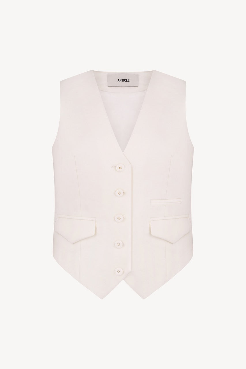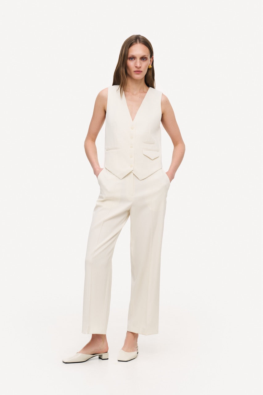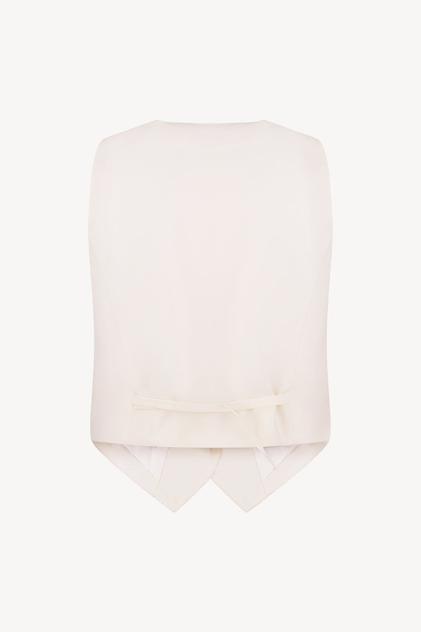 Жилет Bobby прямого силуету виконаний із італійської вовни. Модель має класичну посадку з глибокою проймою та трьома кишенями спереду. Виведений у прямому крої вздовж лінії талії, на підкладці.