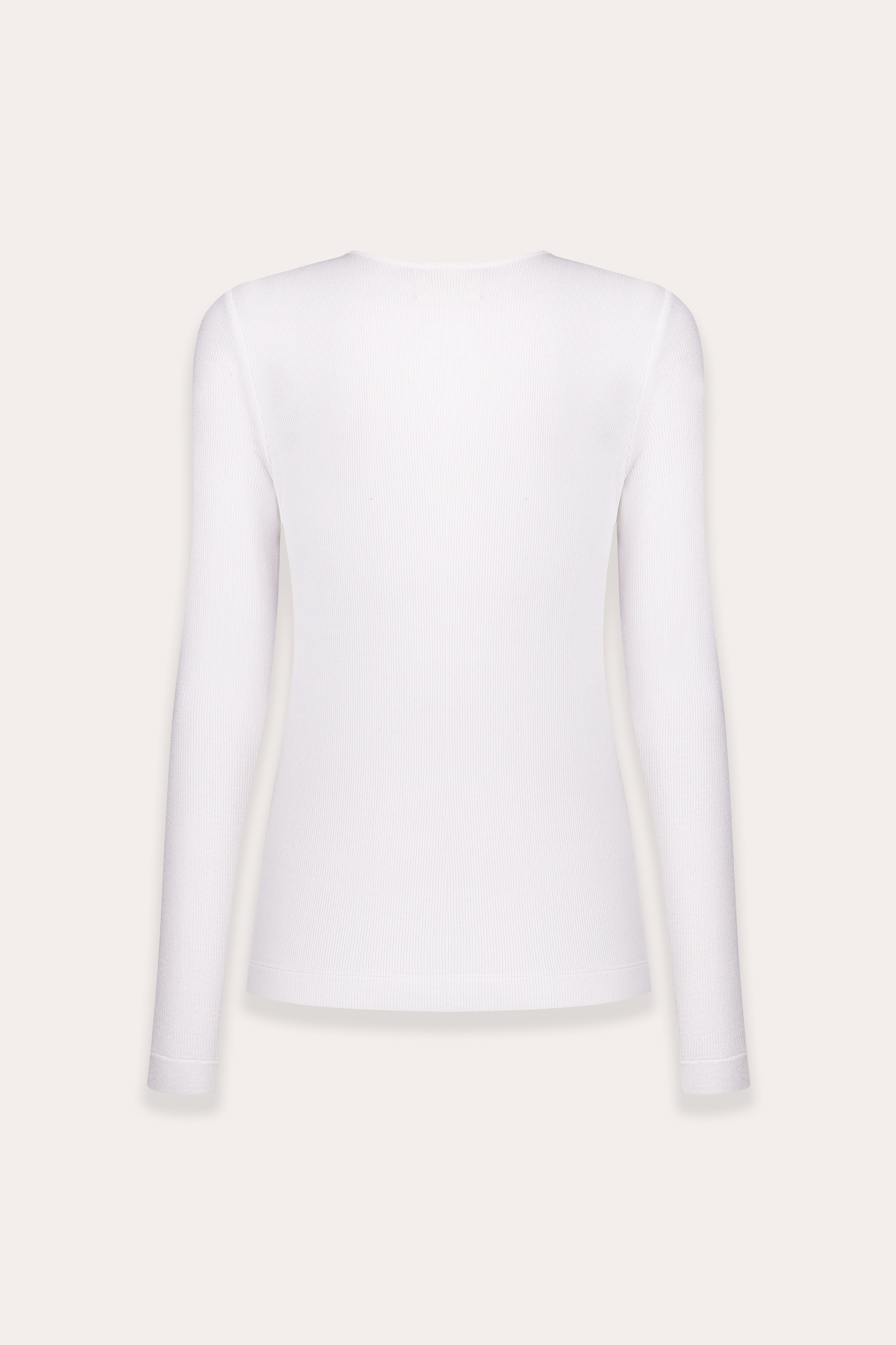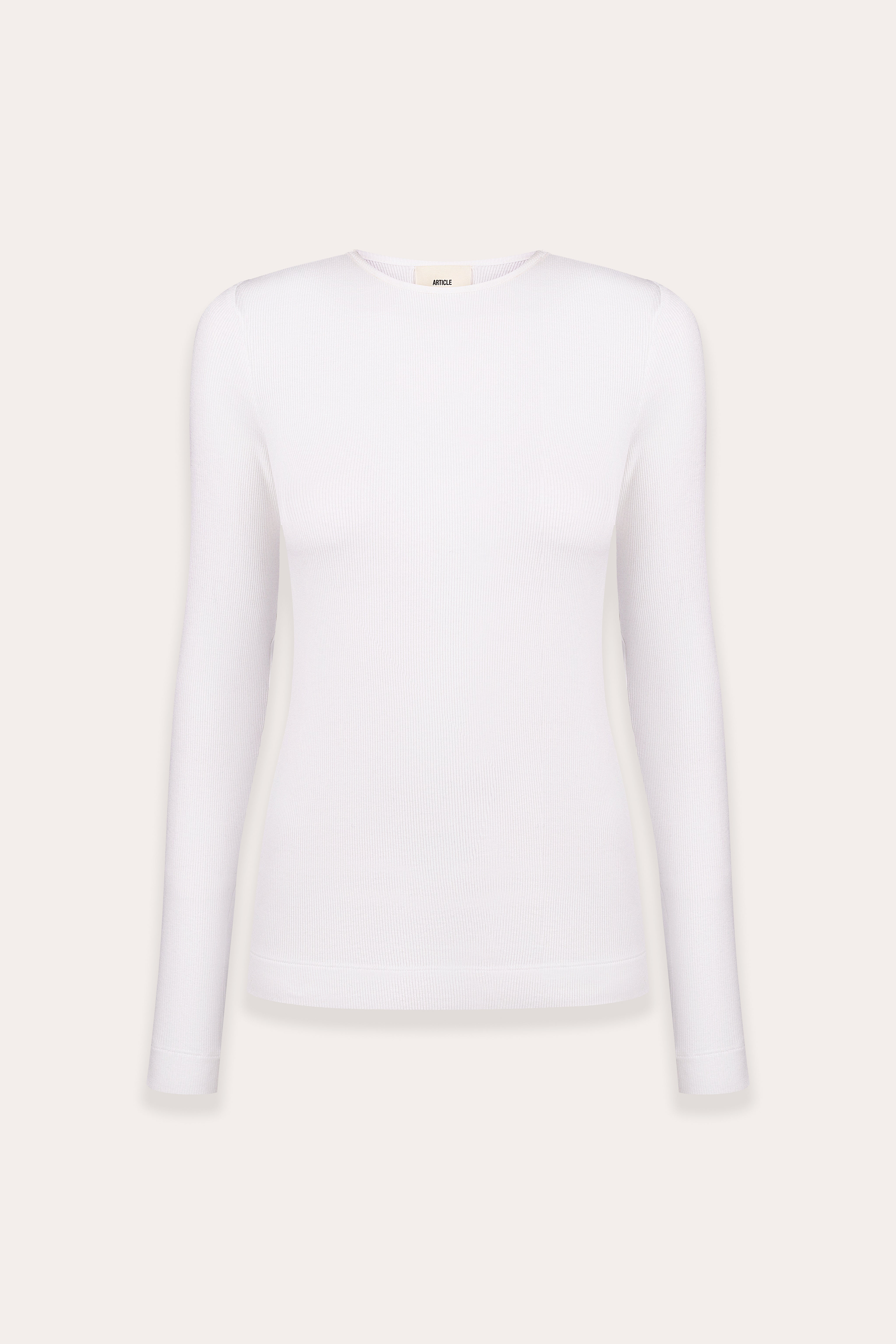 Класичний лонгслів молочного кольору приталеного силуету з довгим рукавом і круглою горловиною з текстурованої італійської бавовни. Ідеальне базове доповнення до вашого гардеробу.