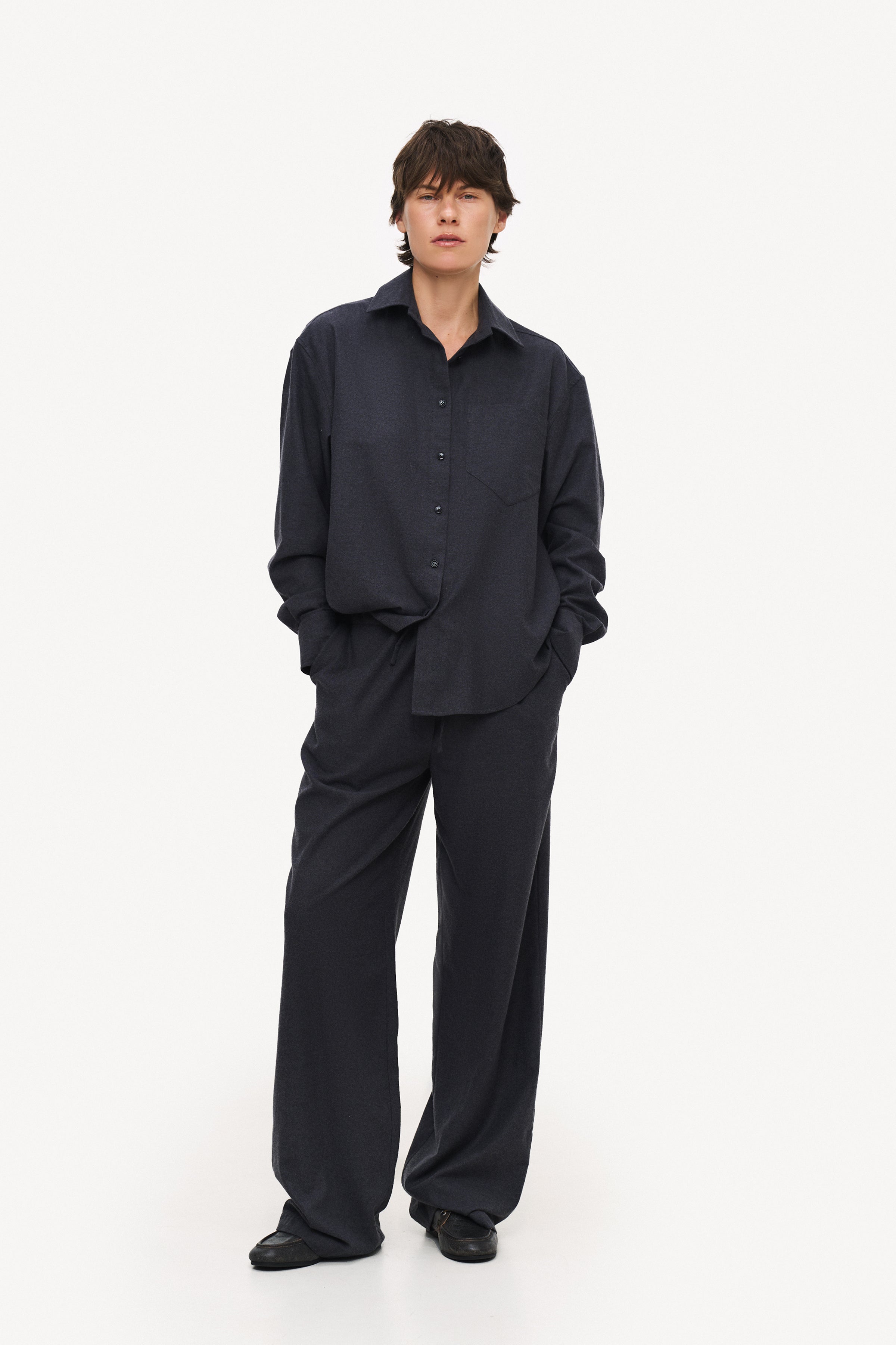 Сорочка вільного крою у стилі оверсайз із заниженою лінією плеча.