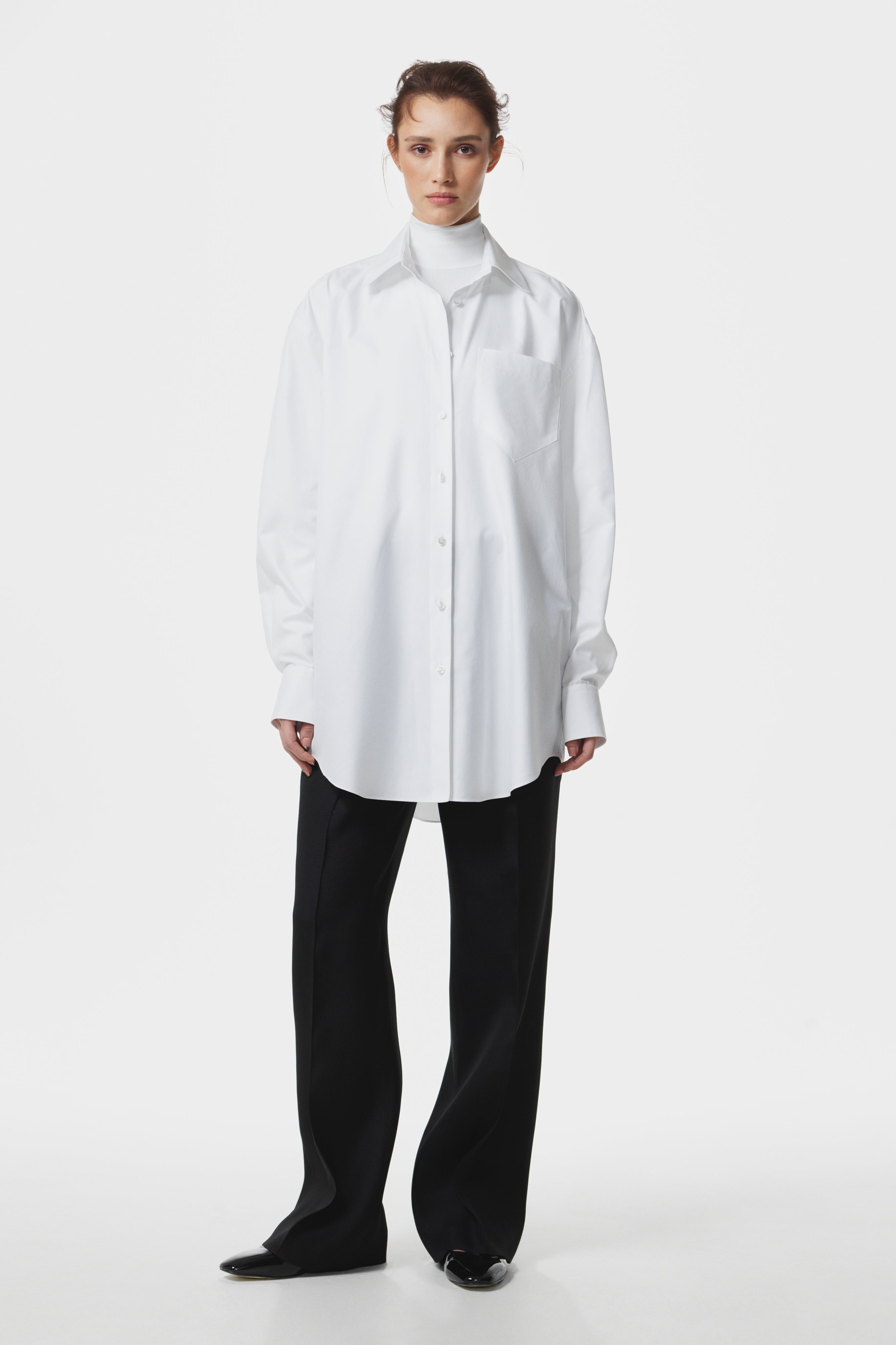 Сорочка вільного крою у стилі оверсайз із заниженою лінією плеча.