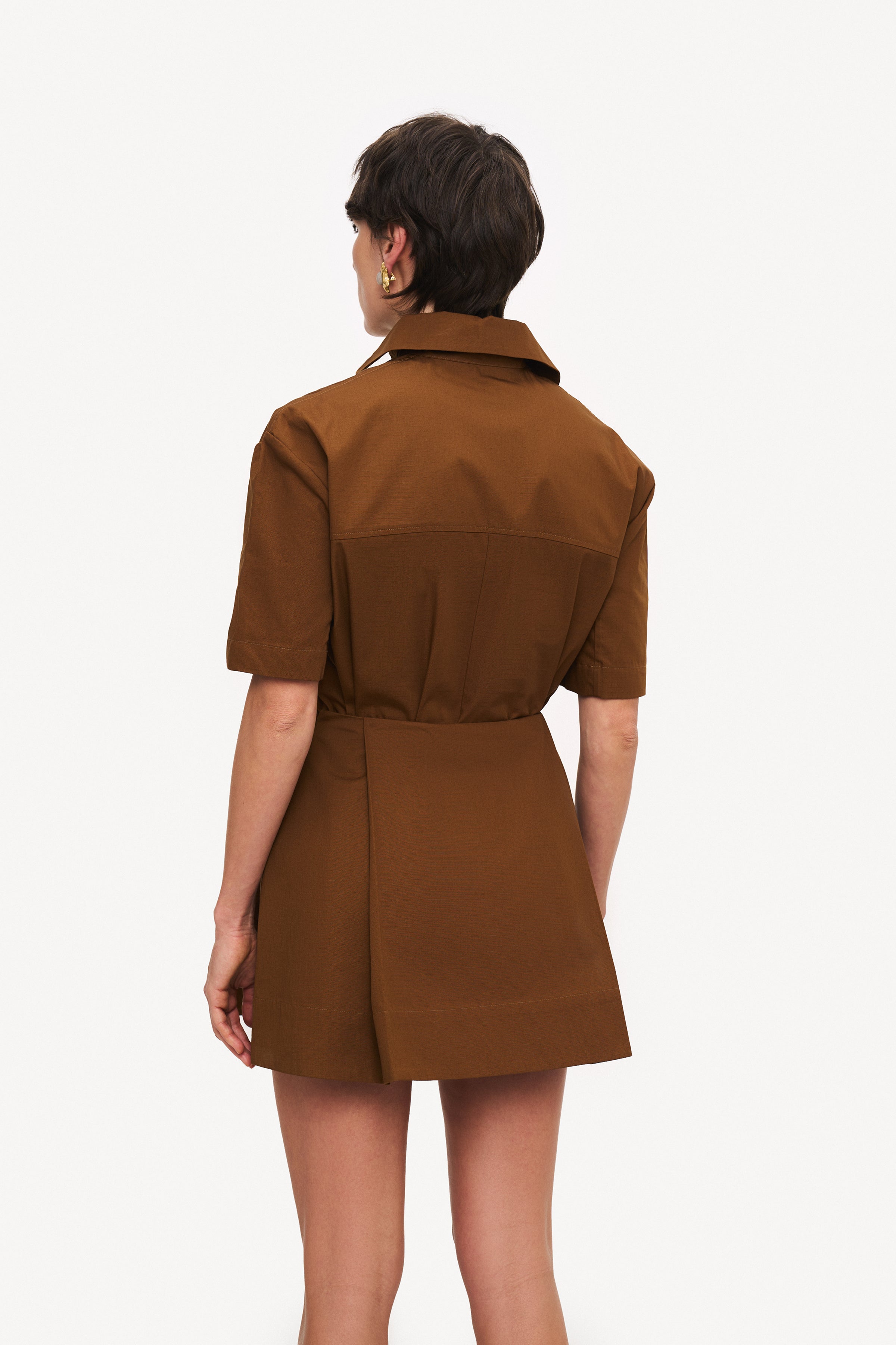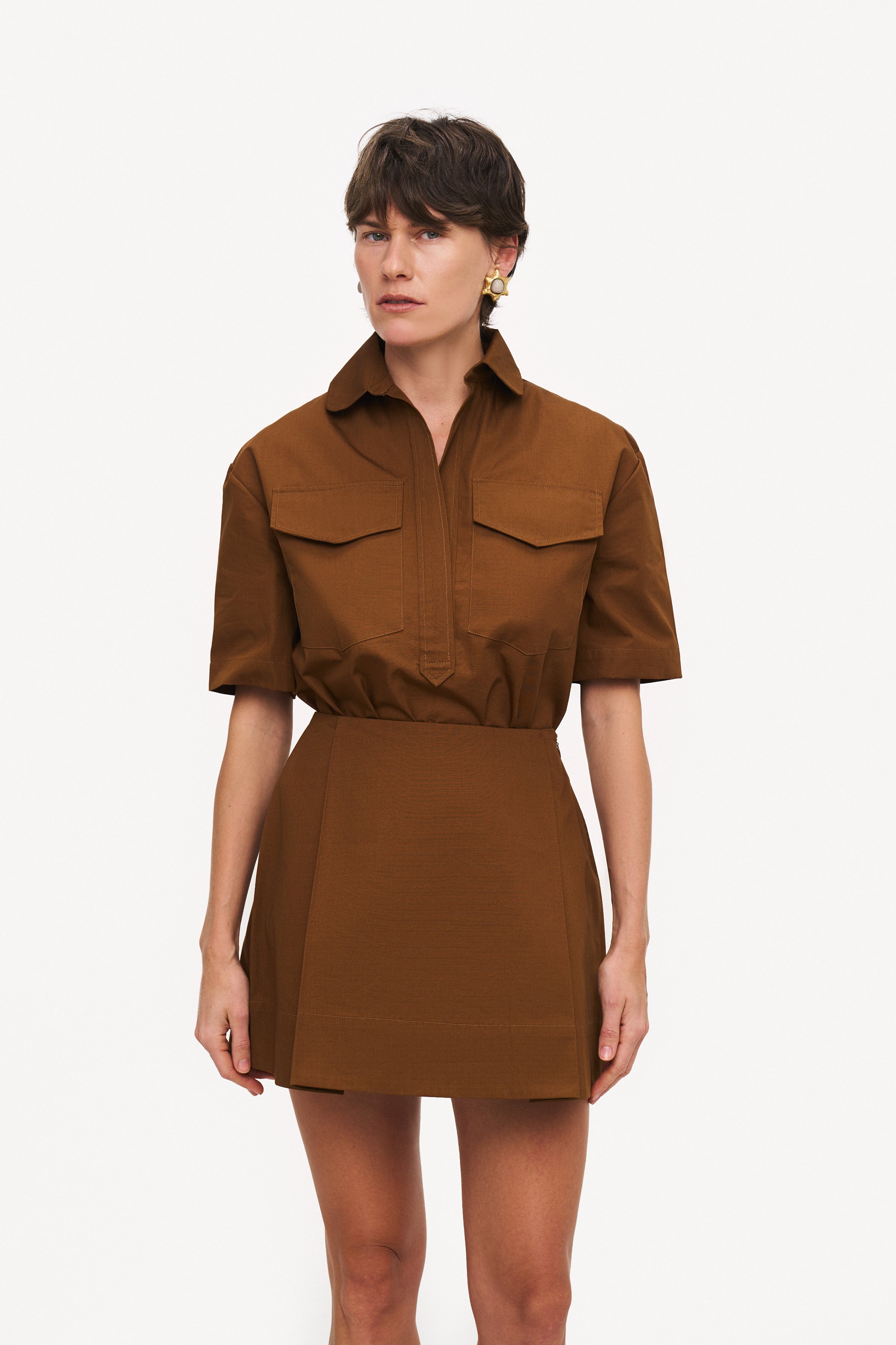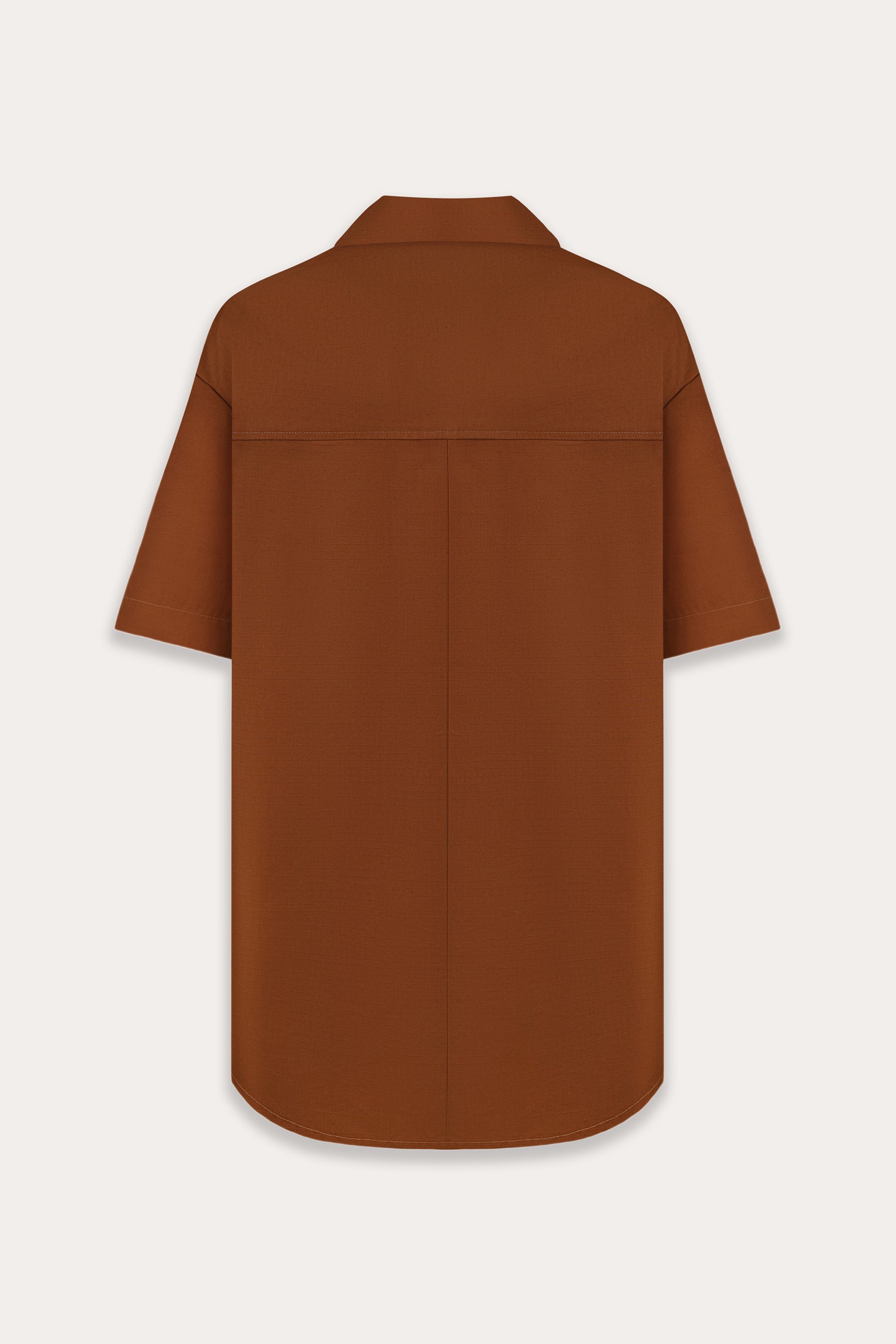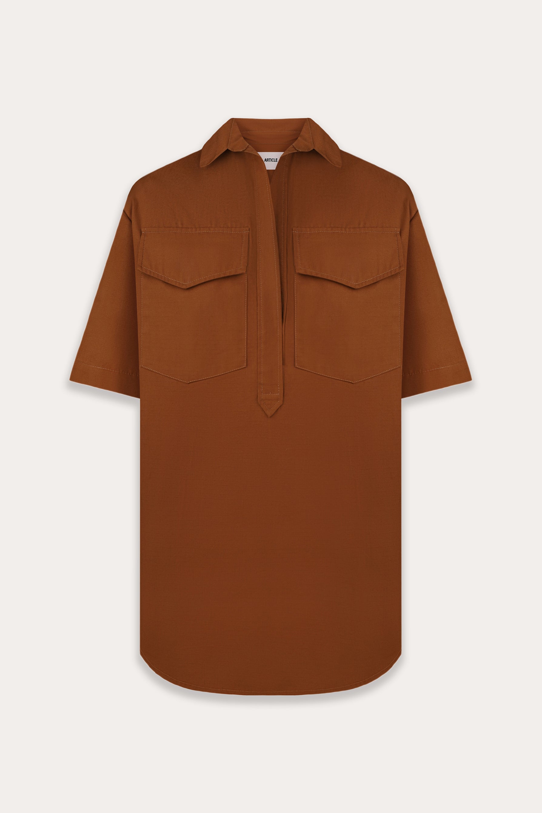 Вільна сорочка Leisure прямого крою, виготовлена з натуральної бавовни. Модель має класичний сорочковий комір та приховану застібку-планку.