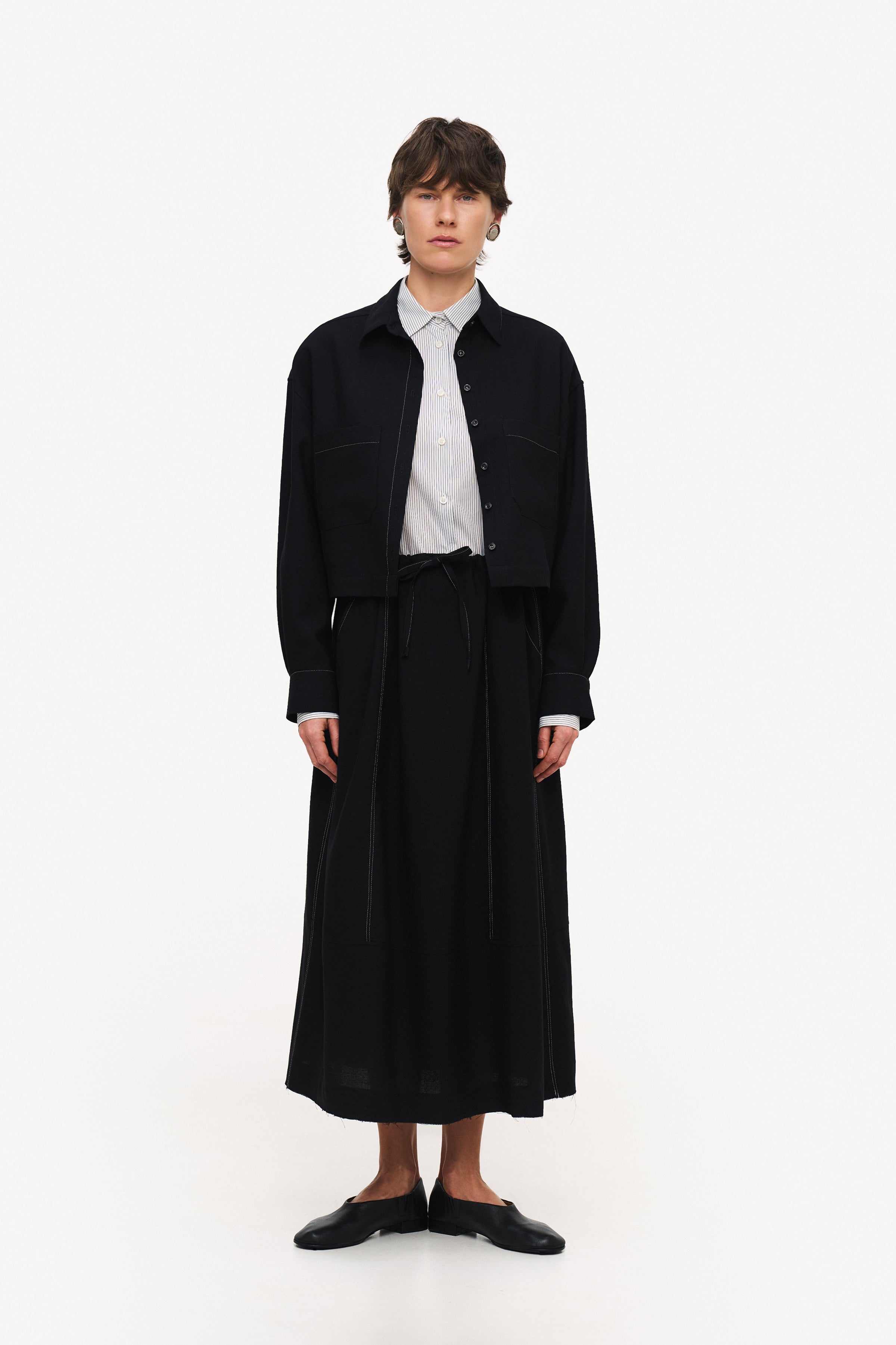 Спідниця Chloe вільного крою, що виконана з натуральної м'якої вовни. Модель має високу посадку на еластичному поясі, доповненому шнурком для регулювання та має необроблений нижній край.