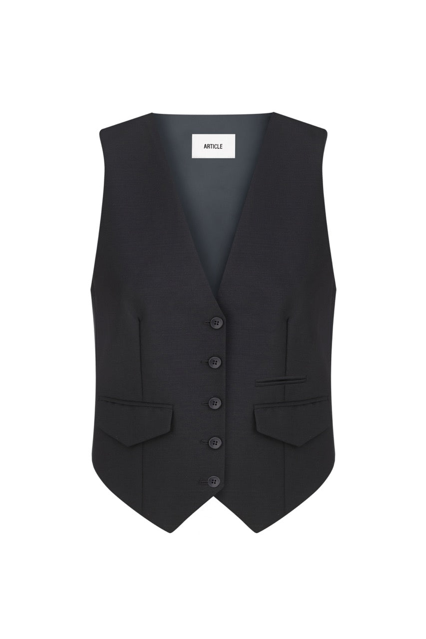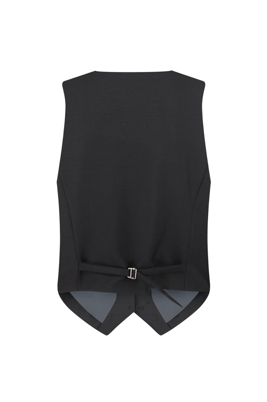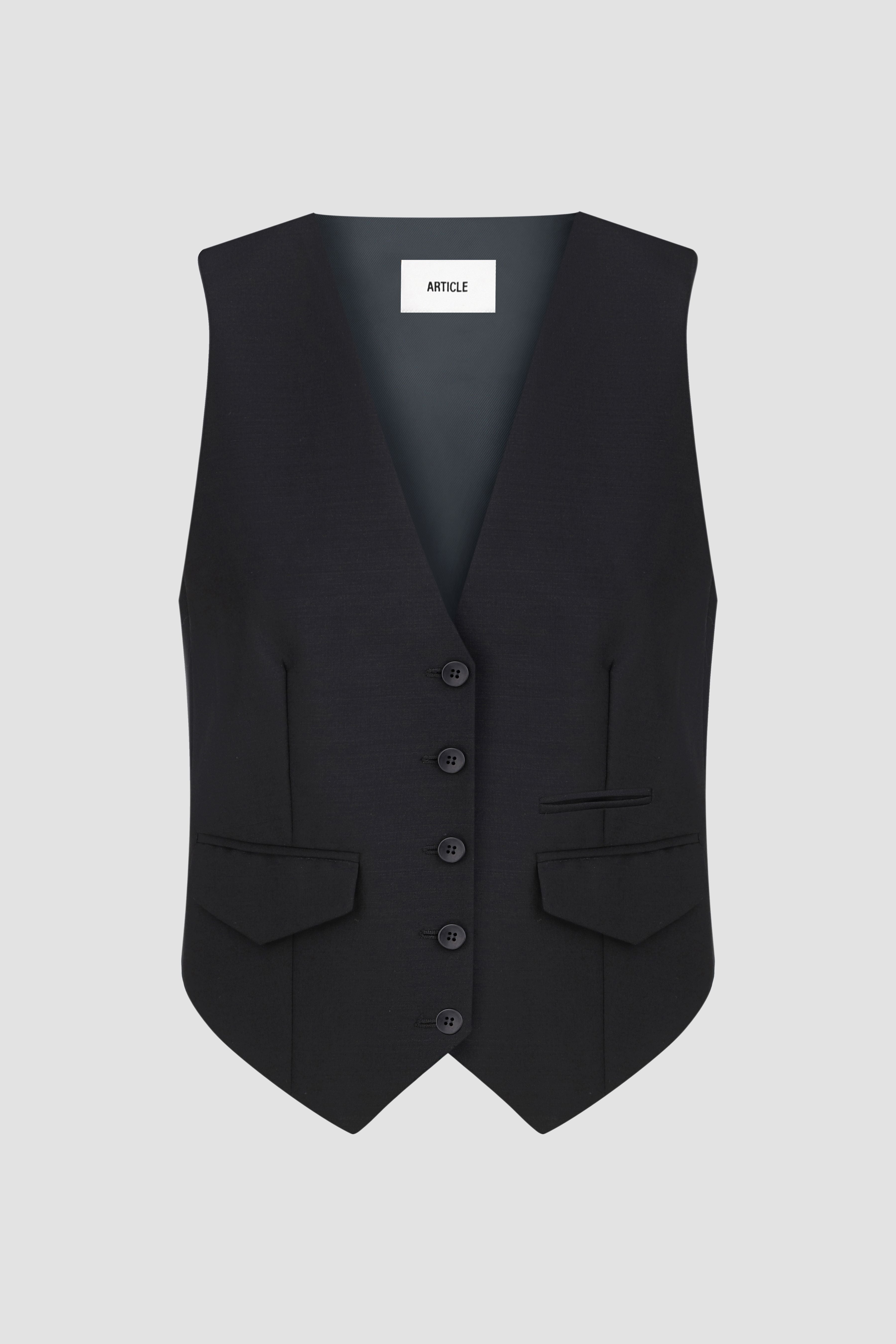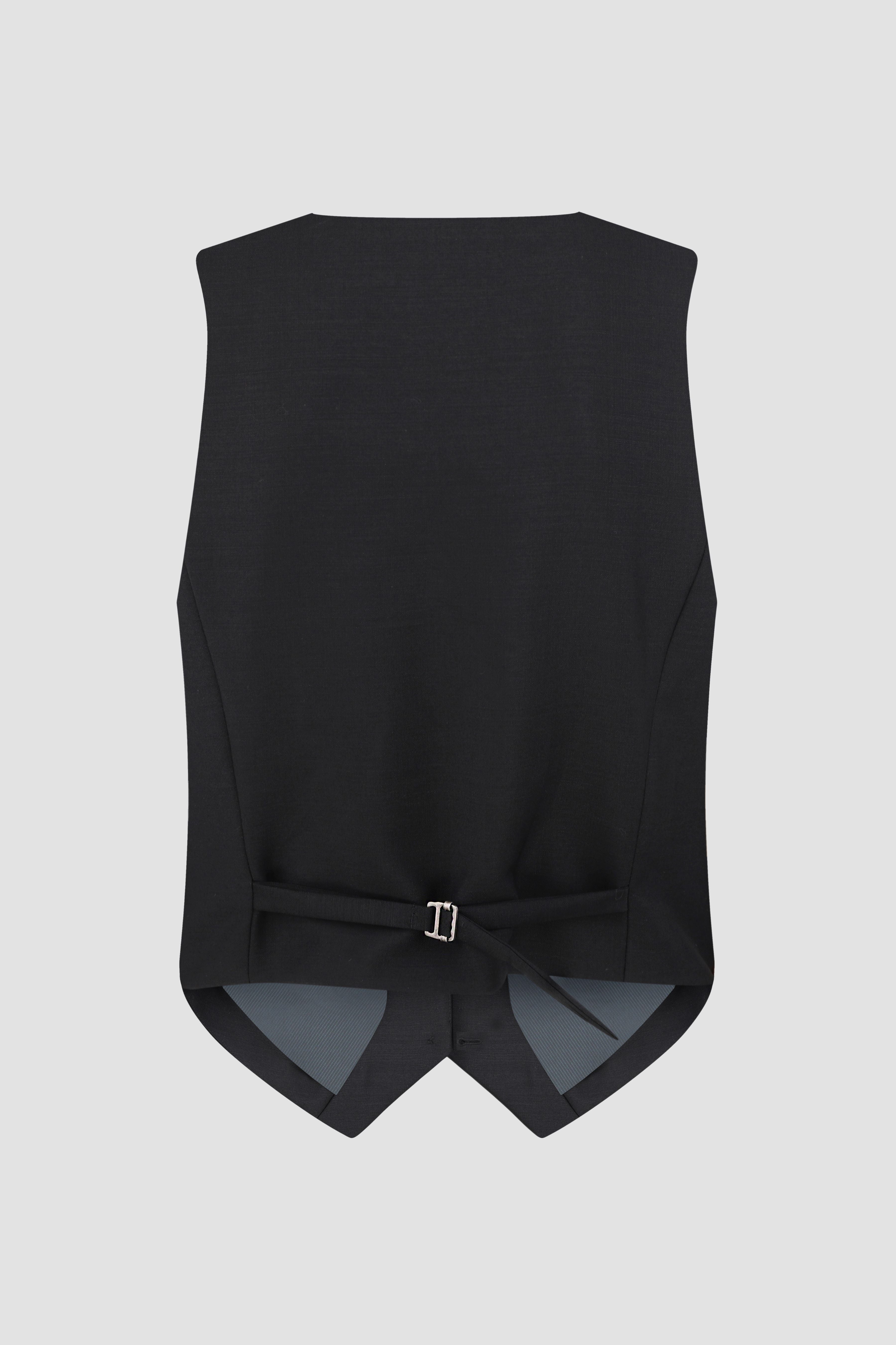 Жилет Bobby прямого силуету виконаний із італійської вовни. Модель має класичну посадку з глибокою проймою та трьома кишенями спереду. Виведений у прямому крої вздовж лінії талії, на підкладці.