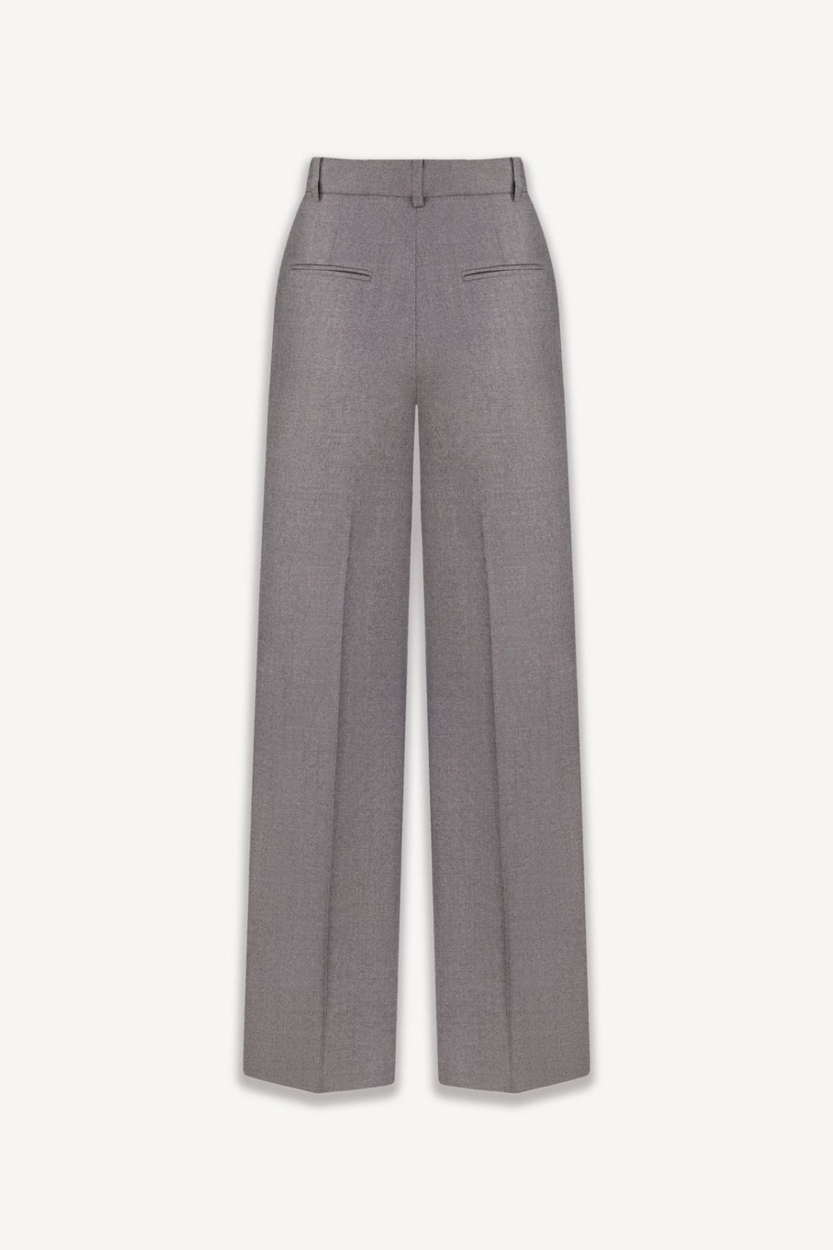 Wide trousers are made of natural soft wool. The model has a high rise and a wide cut along the leg line.