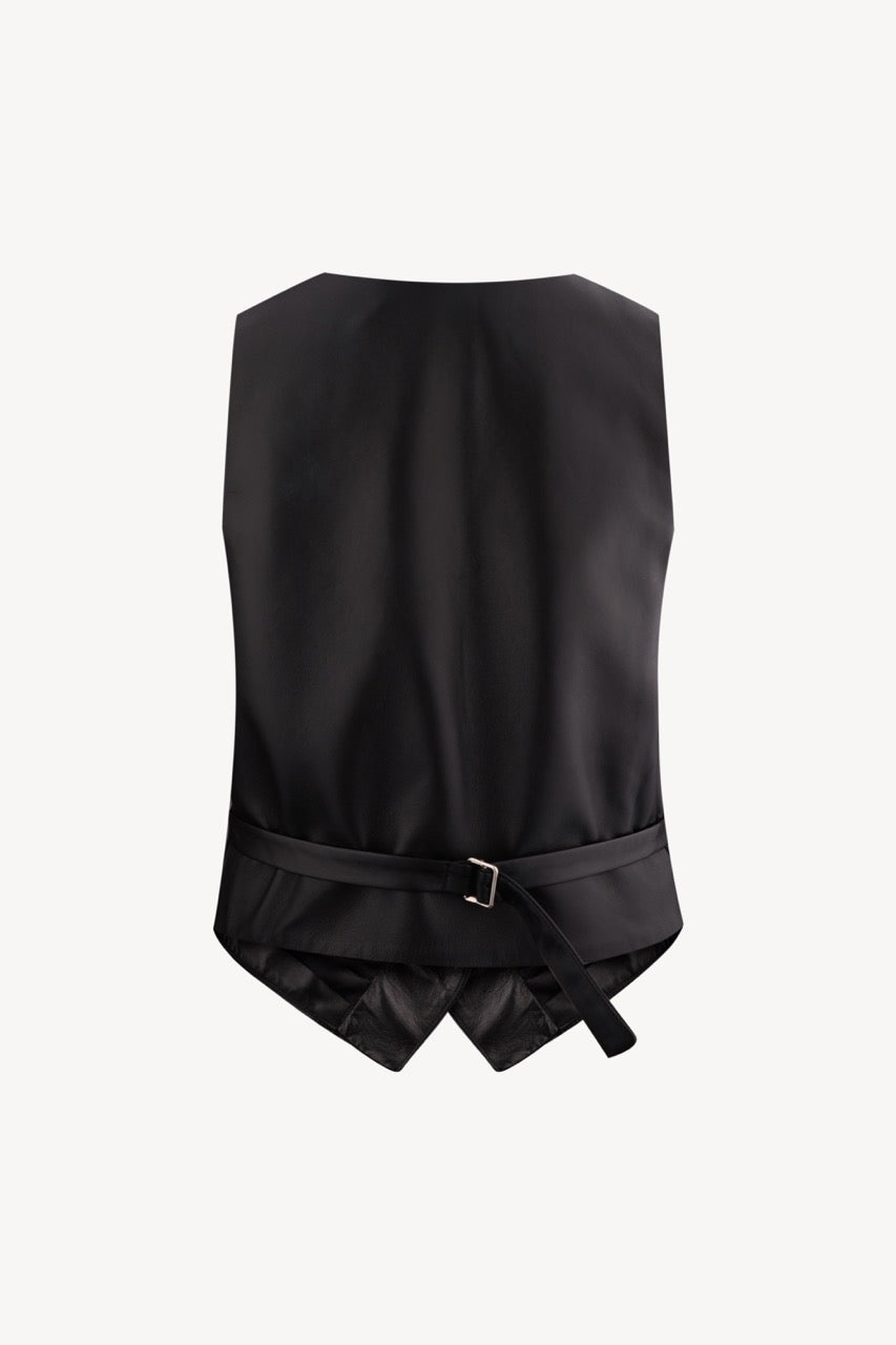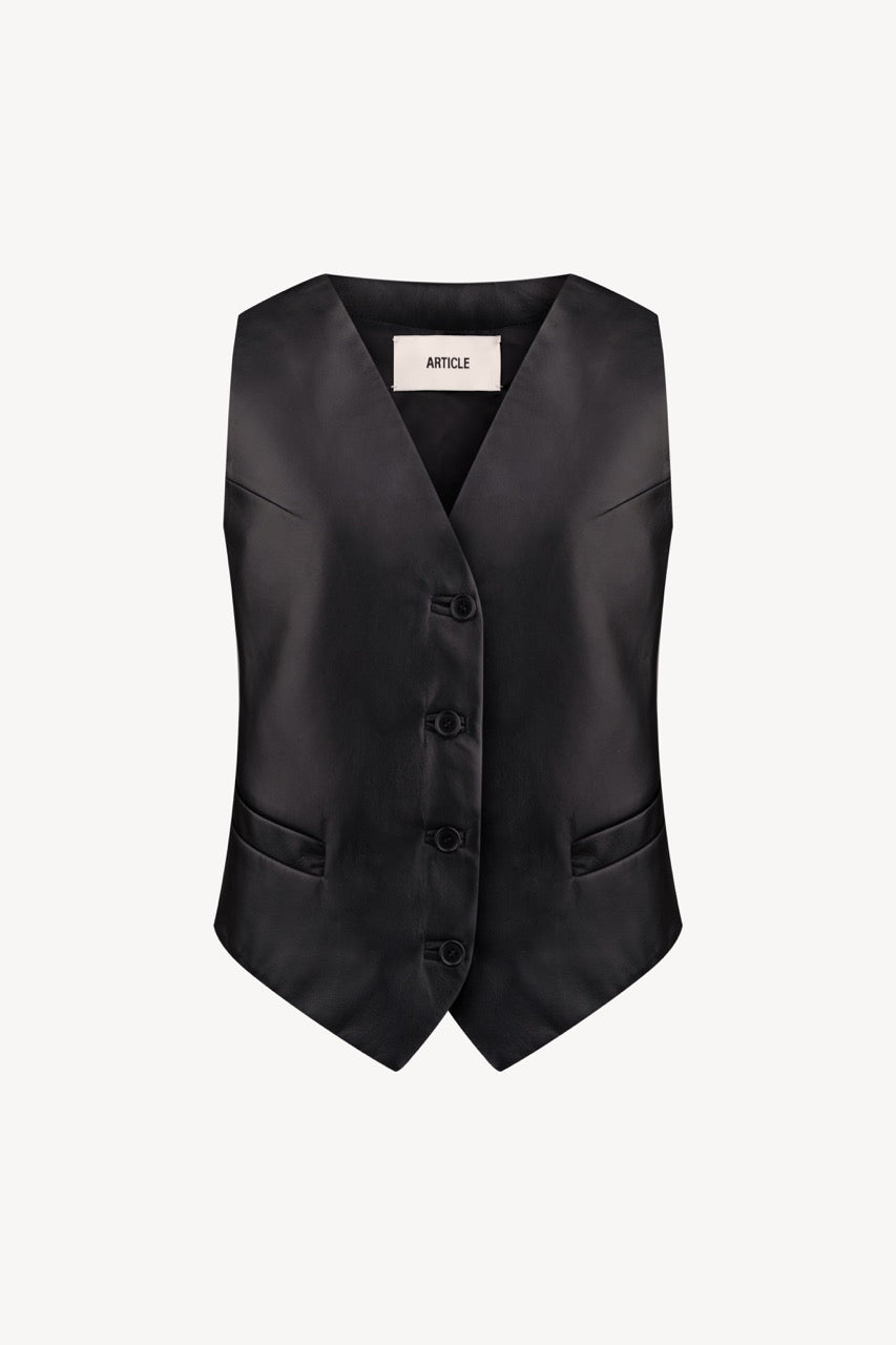 Класичний жилет Roisin прямого силуету виконаний з італійської шкіри.